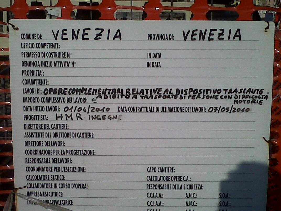 Il 7 maggio 2010 è la data prevista per il completamento delle opere complementari al dispositivo traslante adibito a trasporto di persone con difficoltà motorie;